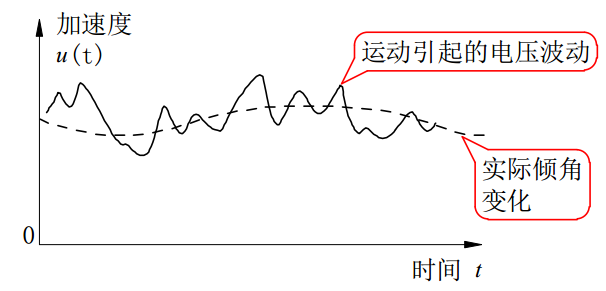 小車(chē)運(yùn)動(dòng)產(chǎn)生的加速度使得輸出電壓在實(shí)際傾角電壓附近波動(dòng),雖然可以通過(guò)數(shù)據(jù)平滑濾波將其濾除。但是平滑濾波也會(huì)使得信號(hào)無(wú)法實(shí)時(shí)反映小車(chē)傾角的變化,從而減慢對(duì)于車(chē)輪的控制,使得小車(chē)無(wú)法保持平衡,這種情況就需要結(jié)合使用陀螺儀來(lái)測(cè)量。而在其他要求不高的情況下則可以對(duì)原始加速度信號(hào)進(jìn)行處理,移除信號(hào)中的高頻成分,因此一定程度的交流分量也是可以接受的。