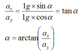 這時(shí)傾角可以通過(guò)計(jì)算X軸和Y軸比值的反正切來(lái)得到: