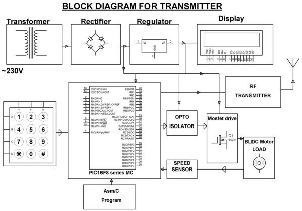 基于PIC微控制器的項(xiàng)目,使用無線技術(shù)在工業(yè)中實(shí)現(xiàn)多個(gè)電機(jī)的速度同步是速度傳感器的典型應(yīng)用。行業(yè)中的多種電動機(jī)之一被認(rèn)為是充當(dāng)發(fā)送器的主電動機(jī),其余電動機(jī)充當(dāng)接收器,它們將跟隨主電動機(jī)的速度。本項(xiàng)目中使用的主電機(jī)和接收電機(jī)是BLDC電機(jī),它們是通過PWM控制和射頻無線通信模式進(jìn)行控制的。