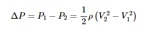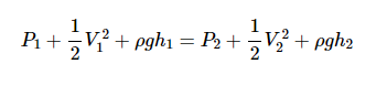 其中P是流體壓力,ρ是流體的密度,V表示流體速度,g是由于重力引起的加速度。帶下標1和2的變量 分別對應于橫截面1和2處的流體參數(shù)。