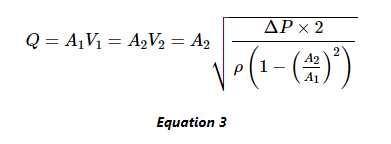 該方程將流體速度(V2)與壓差和管道尺寸相關聯(lián),F(xiàn)在,我們可以將流體的體積流量(Q)計算為: