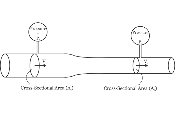 在哪里 ΔXΔt;用流體速度V代替。因此,我們可以通過簡單地測量流體速度來計算流體的體積流速?梢酝ㄟ^將上面討論的概念應用于具有變化的橫截面的管道來實現(xiàn)速度測量,如圖3所示。