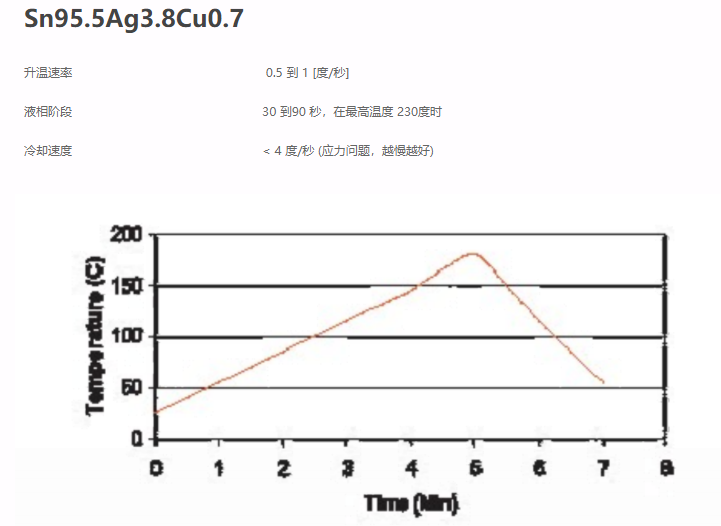 Sn95.5Ag3.8Cu0.7 是一種固–液共熔合金(215℃ – 225℃),是迄今為止在微電子界確認的錫 – 鉛最佳替代品。銀的存在,提高了機械特性。相比于Sn63Pb37,它更容易獲得,并且其焊接工藝更加緊密。更重要的是,這種材料引起的應(yīng)力相較于前者低25%。