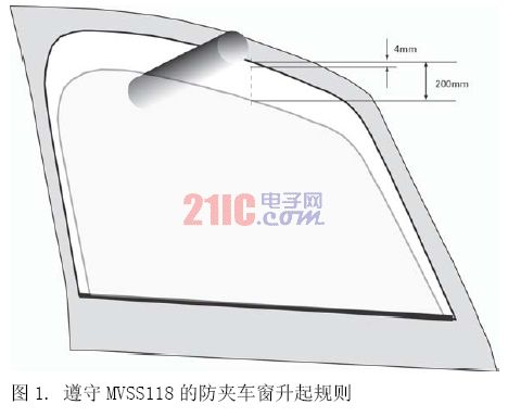 夾物檢測算法一開始就要符合標準(FMVSS118 & 74/60/EEC)的要求:檢測區(qū)域為4 至200 毫米;最在施加力100 牛;夾住物體時反轉(zhuǎn)方向;標準的確認性測試。