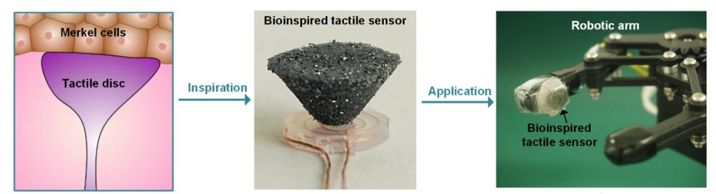 柔軟的自供電傳感器被設(shè)計(jì)為默克爾的磁盤。當(dāng)安裝在機(jī)械臂上時(shí),它可以用于深度學(xué)習(xí)。