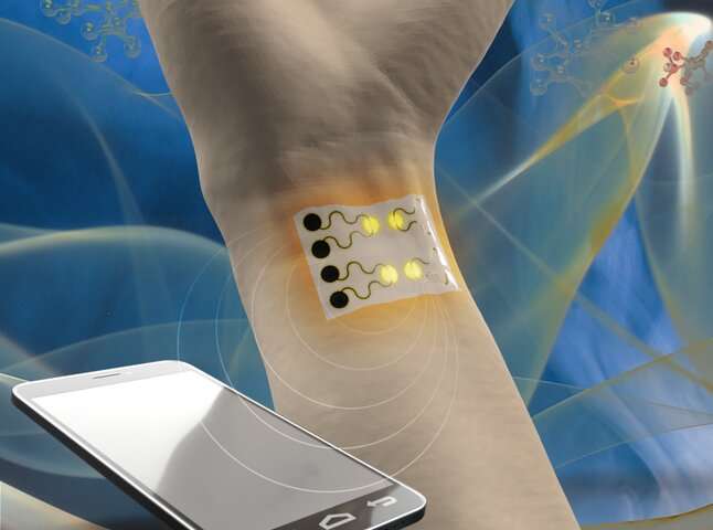 Cheng和他的團(tuán)隊(duì)使用激光對(duì)類似于石墨烯的高度多孔的納米材料單線進(jìn)行圖案化,以用于檢測(cè)氣體,生物分子以及將來(lái)的化學(xué)物質(zhì)的傳感器。在設(shè)備平臺(tái)的非傳感部分,團(tuán)隊(duì)創(chuàng)建了一系列蛇形線條,并用銀涂層。當(dāng)它們向銀上施加電流時(shí),氣體感應(yīng)區(qū)域會(huì)由于明顯更大的電阻而局部加熱,從而無(wú)需單獨(dú)的加熱器。蜿蜒的線條使設(shè)備像彈簧一樣伸展,以適應(yīng)可穿戴傳感器的身體彎曲。