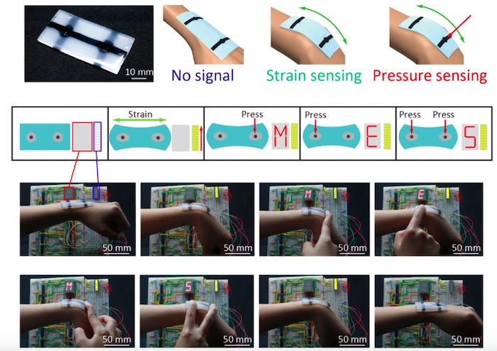 在此演示中,壓力和應(yīng)變感測由每個動作獨立控制。圖片由《科學(xué)報告》提供