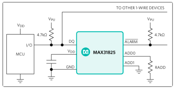 MAX31825應(yīng)用實(shí)例。圖片由Maxim Integrated提供