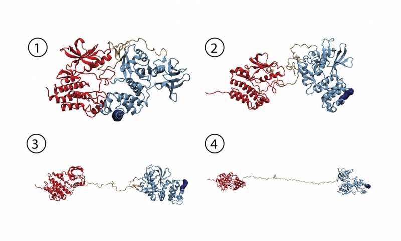 由于這項技術(shù),研究人員獲得了有關(guān)FAK的詳細機械信息,再加上其原子結(jié)構(gòu)的知識,可以用力如何誘導(dǎo)結(jié)構(gòu)變化來激活FAK來解釋。HITS的分子生物力學(xué)小組在高性能計算機上模擬了此過程,以獲取這些事件的完整動態(tài)視圖。小組負(fù)責(zé)人FraukeGr?ter說:“我們成功地詳細揭示了FAK激活的關(guān)鍵步驟。” “我們可以證明這種信號蛋白不僅被力量激活,而且在進一步伸展時仍保持活性!