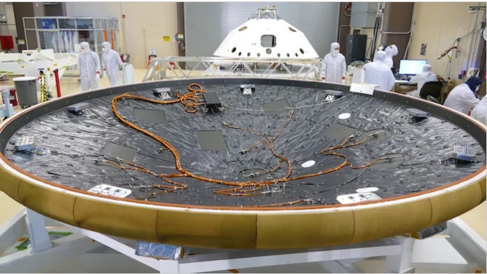 MEDLI2包括傳感器,電子設備和線束,它們安裝在Mars 2020隔熱板上。圖片由NASA / JPL-Caltech提供