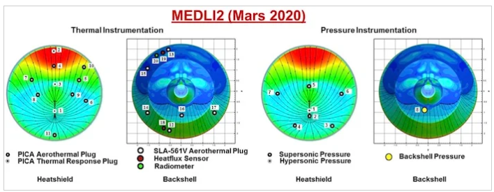 Perseverance隔熱板上的一套傳感器稱為MEDLI2,旨在測量流動站的進入,下降和著陸(EDL),以更好地協(xié)助未來的任務。