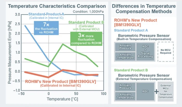 根據(jù) ROHM 的說法,BM1390GLV 采用專有的溫度補償算法來最大限度地減少溫度引起的誤差。