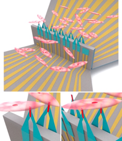 彈出式傳感器與心臟細胞接口的圖示。圖片由UCSD提供