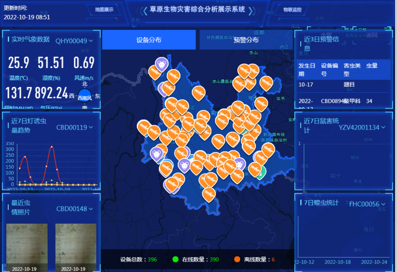 據(jù)悉,該項(xiàng)目采用無線傳感器、物聯(lián)網(wǎng)、云平臺、大數(shù)據(jù)以及互聯(lián)網(wǎng)等信息技術(shù)手段和硬件平臺支撐。新建成的云南省草原生物災(zāi)害監(jiān)測預(yù)警中心、滇東北草原生物災(zāi)害監(jiān)測預(yù)警中心、滇西北草原生物災(zāi)害預(yù)警中心、66個(gè)重點(diǎn)草原縣市區(qū)測報(bào)點(diǎn)通過三級聯(lián)動(dòng),實(shí)現(xiàn)云南草原有害生物災(zāi)害的信息數(shù)據(jù)采集、存儲與計(jì)算、大數(shù)據(jù)智能分析識別及人工輔助判讀、監(jiān)測結(jié)果實(shí)時(shí)顯示和災(zāi)害預(yù)警綜合展示、平臺系統(tǒng)內(nèi)信息的互聯(lián)互通,做到草原生物災(zāi)害“早發(fā)現(xiàn)、早預(yù)警、早處置”。