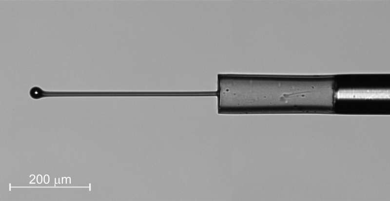 在光學(xué)學(xué)會(huì) (OSA) 期刊Optics Letters中,Donlagic 和 Simon Pevec 描述了他們的新傳感器,該傳感器由石英玻璃制成,形成一個(gè)只有 800 微米長(zhǎng)和 100 微米直徑的圓柱體——與人類頭發(fā)的直徑大致相同。他們通過(guò)測(cè)量蒲公英種子的硬度或液體的表面張力,證明了新傳感器能夠以比微牛頓更好的分辨率測(cè)量力。