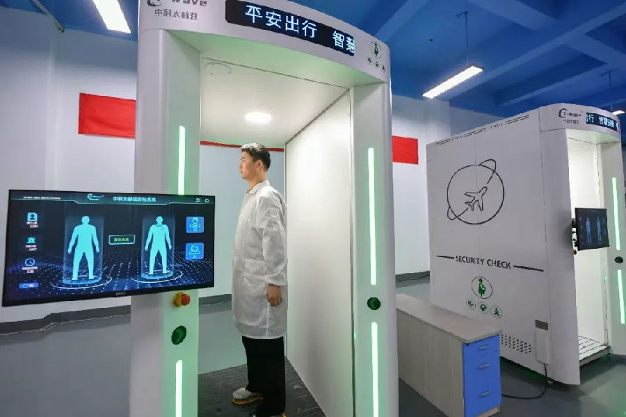 圖| 安徽中科太赫茲科技有限公司工作人員在采集主動(dòng)式太赫茲人體安檢設(shè)備的成像數(shù)據(jù)
