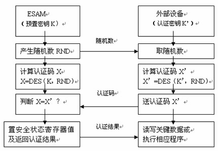 公開的數(shù)據(jù)加密算法,它采用對(duì)稱密鑰機(jī)制,即加密密鑰和解密密鑰是相同的,數(shù)據(jù)的安全性取決于密鑰的安全性。ESAM主要是采用隨機(jī)數(shù)理論,用DES算法計(jì)算認(rèn)證碼,通過比較認(rèn)證碼的方法進(jìn)行芯片內(nèi)部密鑰與外部認(rèn)證密鑰的對(duì)比,從而達(dá)到判斷與認(rèn)證的目的。
