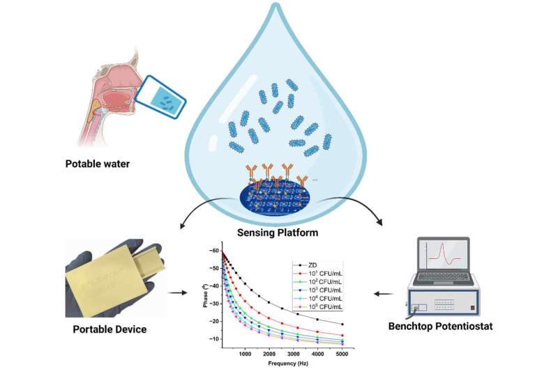 在 157 月發(fā)表在《生物傳感器》雜志上的一項(xiàng)研究中,Prasad 和她的團(tuán)隊(duì)展示了一種便攜式電化學(xué)傳感平臺(tái),可在 7 分鐘內(nèi)檢測(cè)和量化水中的大腸桿菌 O<>:H<>。