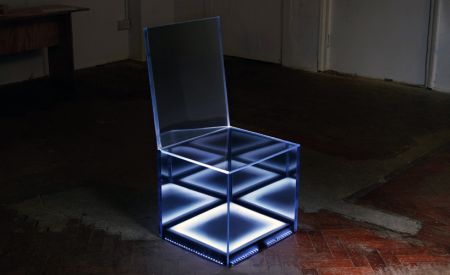 這把被設(shè)計(jì)師賦予了“隱身”功能的座椅將于2月份在英國(guó)皇家藝術(shù)學(xué)院展出,它向人們展示了一種依附于意識(shí)形態(tài)的設(shè)計(jì)理念。椅子的“隱身”功能依靠貼有單向鏡膜的鏡面有機(jī)玻璃實(shí)現(xiàn),這些有機(jī)玻璃可以有效地反射出周?chē)h(huán)境,讓椅子看上去如同懸空一樣。除此之外,設(shè)計(jì)者還在座椅內(nèi)部加裝了超聲傳感器與LED照明燈,當(dāng)傳感器探測(cè)到有人靠近時(shí),便向LED燈發(fā)出脈沖信號(hào),燈便會(huì)如心跳般閃爍,與此同時(shí),座椅下表面會(huì)逐漸變透明,邊緣也會(huì)泛起藍(lán)光。當(dāng)傳感器“確認(rèn)”有人要上座時(shí),LED燈才會(huì)停止閃爍。高科技的支持和新穎的設(shè)計(jì)讓這款座椅極具夢(mèng)幻效果,十分吸引人。