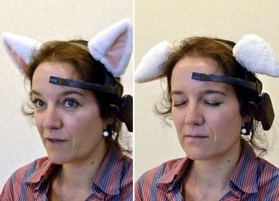 據(jù)發(fā)明人員介紹,這款毛茸茸的頭飾可以閱讀用戶的腦部活動(dòng),當(dāng)用戶精神集中的時(shí)候,貓耳朵立刻豎起來;當(dāng)用戶進(jìn)入放松狀態(tài)時(shí),貓耳朵開始搭拉下來。