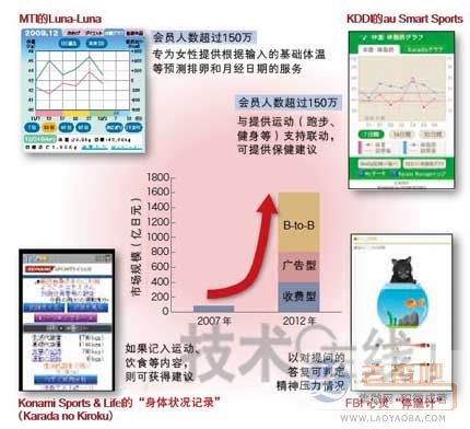 “終于有了成功的范例!”日本調(diào)查公司Seed Planning的荒川信行指的是日本MTI公司提供的Luna-Luna和KDDI公司提供的au Smart Sports服務(wù)(圖1)。兩者都是利用手機,每月收費數(shù)百日元的保健服務(wù),利用人數(shù)現(xiàn)在都超過了150萬人(注1)。