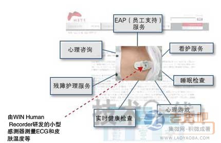 而日本大商社丸紅的子公司丸紅系統(tǒng)開展了一項利用小型傳感器可同時測量使用者心電(ECG)、體表溫度及體動的保健服務(wù)(圖2)。2010年1月,與開發(fā)所利用傳感器的WIN Human Recorder公司簽訂了銷售代理合約,據(jù)稱3年后的銷售目標是每年50億日元。