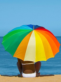 西班牙巴西倫亞大學(xué)的約瑟·馬丁內(nèi)斯-洛薩諾博士在沙灘太陽傘下放了一塊紫外線傳感器。盡管帆布能有效阻擋直接的光照,但是仍有5%的輻射會到達(dá)太陽傘下的傳感器。一部分偷偷遛進(jìn)去的紫外線雖然強(qiáng)度不高,但是仍然能夠造成曬傷。