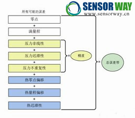 通常,制造商并不會在產(chǎn)品數(shù)據(jù)手冊上列出總誤差范圍,而是單獨列出各種誤差。各類誤差相加時(即總誤差范圍),總誤差范圍就會非常大。因此,總誤差范圍可作為選擇傳感器的重要選擇依據(jù)。