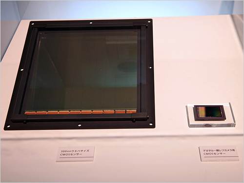 左面那塊便是佳能研發(fā)的超大尺寸傳感器了