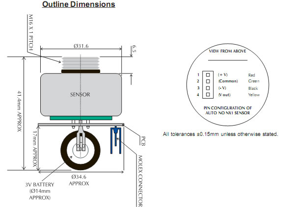 NX1一氧化氮傳感器0.05 ± 0.01 µA/ppm 0-5000ppm